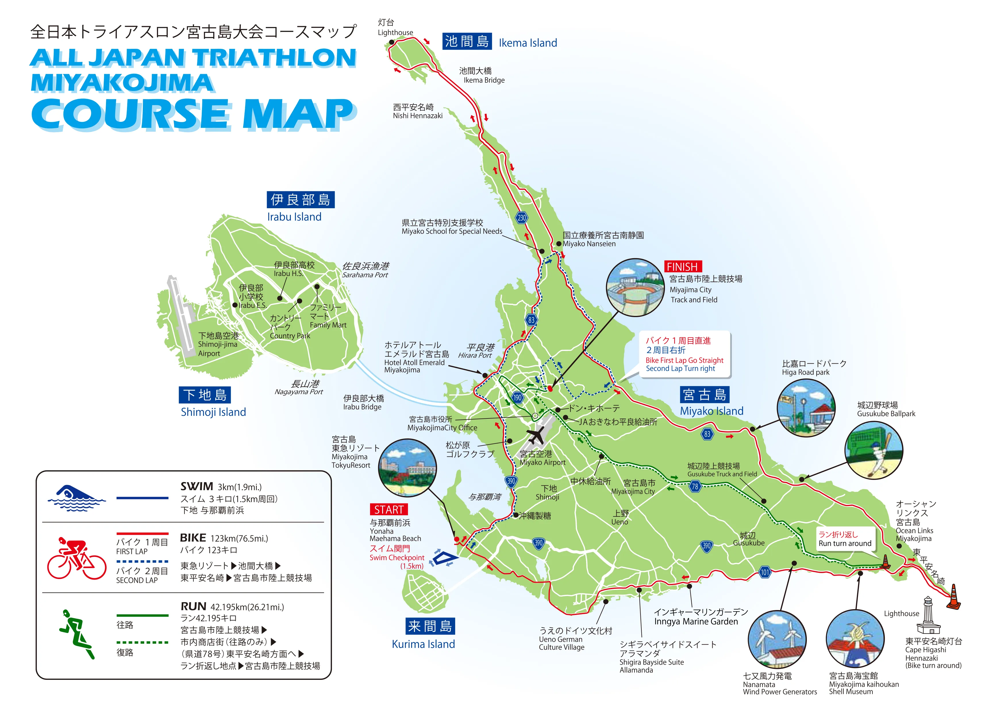 宮古島市陸上競技場~市内商店街(往路のみ)〜(県道78号)東平安名崎方面へ〜ラン折返し地点~宮古島市陸上競技場
