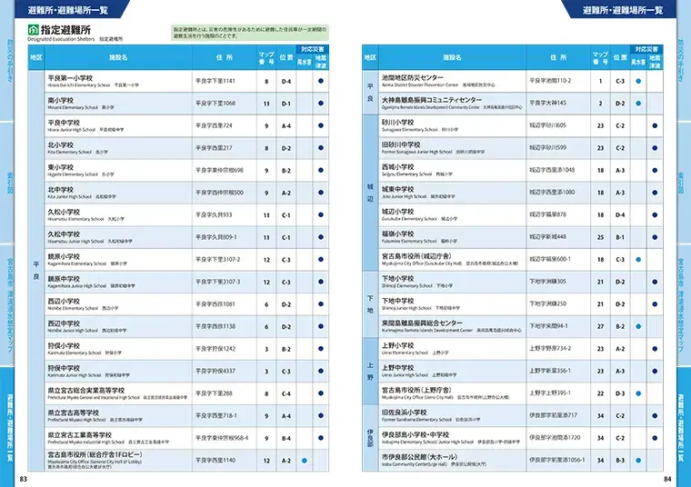 宮古島市では各エリアに避難所・避難場所が設けられています。